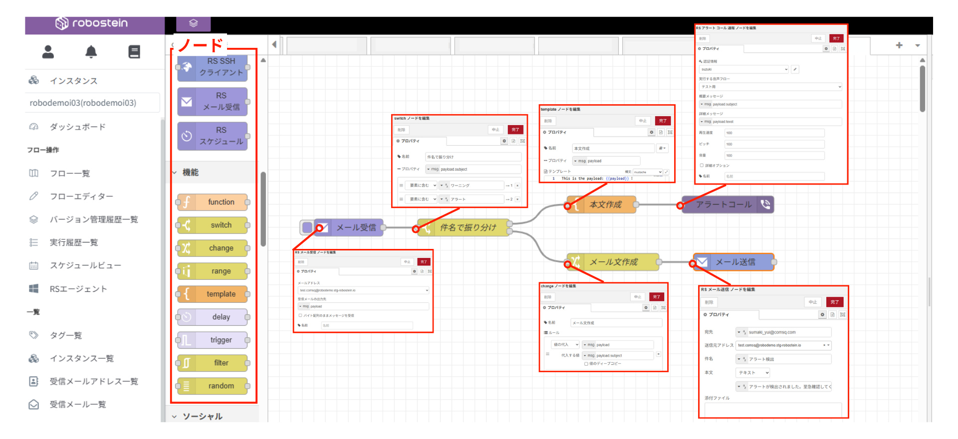 各ノードは、メールの受信・条件分岐・通知送信などの役割を持っています。